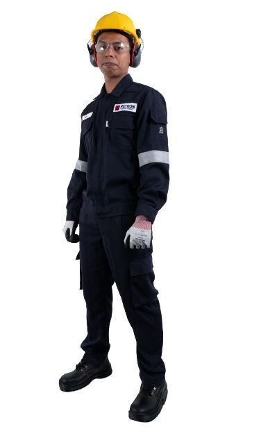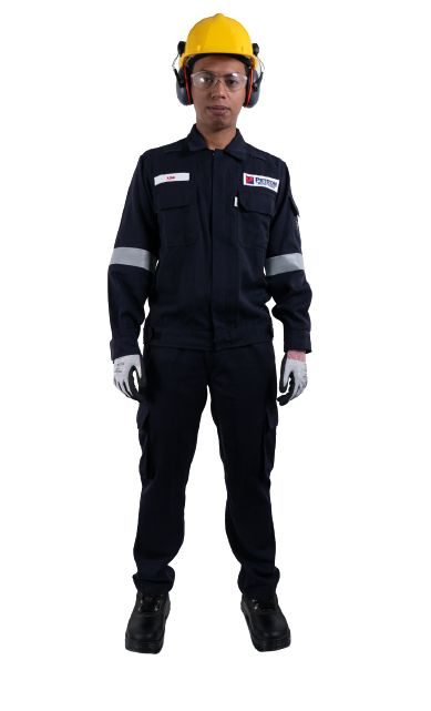 Pant • Snap button / FR velcro / FR zipper • Bar-tack implement to strengthen at potential weak spot • Knee pockets / tools pocket • Sewing with FR threads • Triple needle stitching • 1” or 2” FR reflective strips at leg |