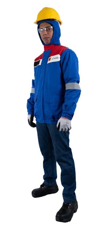 Jacket • Snap button / FR velcro / FR zipper • Loops for walkie talkie • One-way FR brass zipper • Bar-tack implement to strengthen at potential weak spot • Pen pocket at both sleeves • 1” or 2” FR reflective strips at back or shoulder & sleeve |
